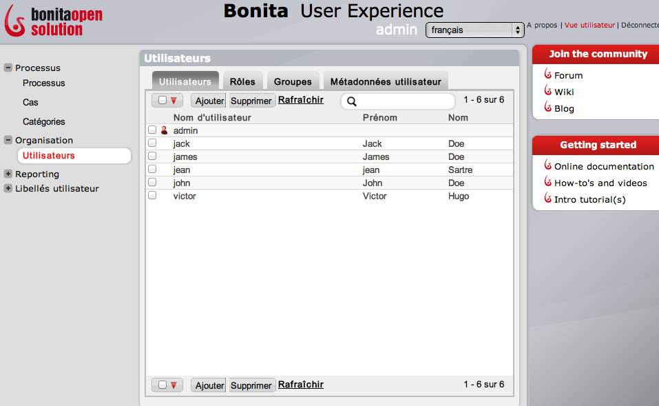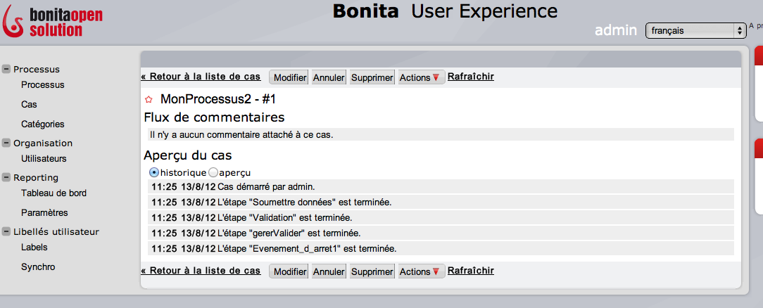 - Vous êtes alors connecté automatiquement comme un admin (mdp : bpm)