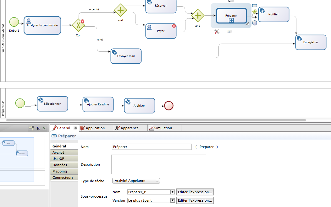 - Préciser le sous-processus appelé en le sélectionnant sous “nom”