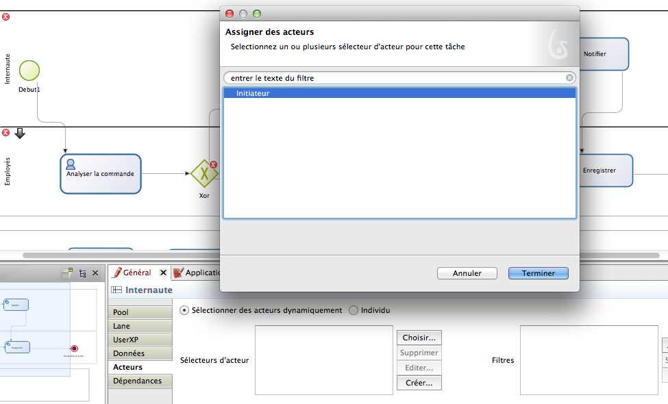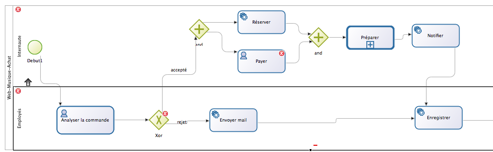 Nous avons deux types d'acteurs : les internautes et les employés. Pour leur affecter des tâches, nous allons définir des lanes.