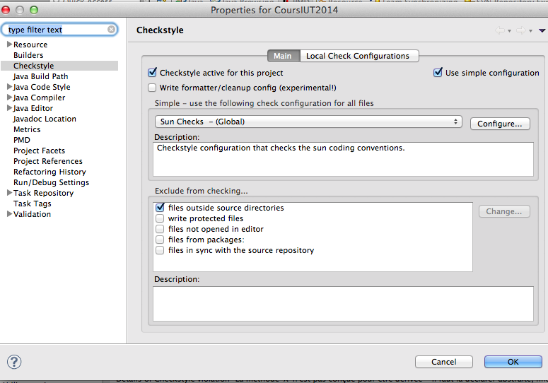 - Dans Eclipse → preference → CheckStyle