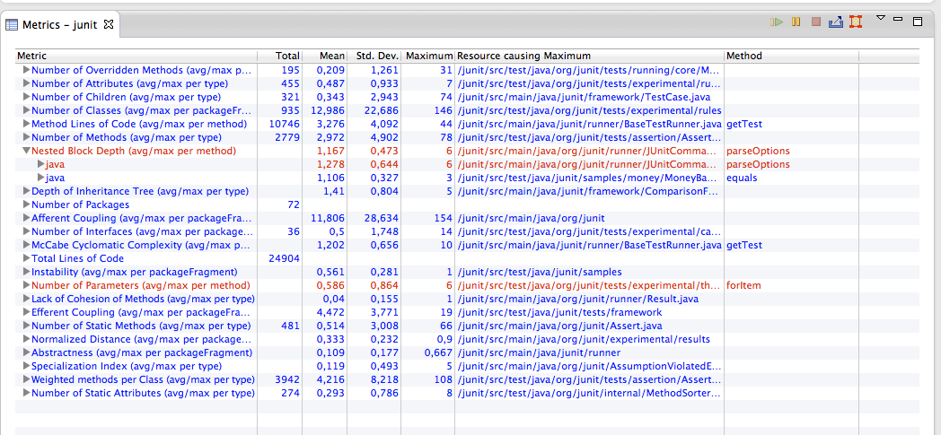 - Nous allons ouvrir une autre vue (Extrait de http://metrics.sourceforge.net/).