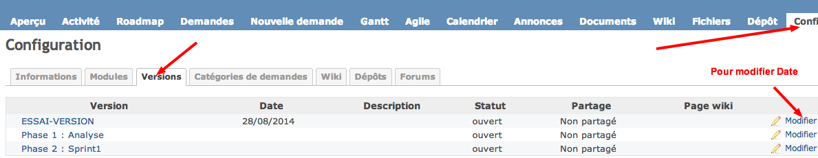 - Créer les versions suivantes qui correspondent aux grandes livraisons de votre projet: Phase1 : Spécification, Phase 2: Sprint 1, Phase 2 : Intgératon