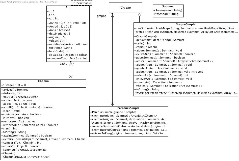 - les classes de gestion des graphes simples (Regardez bien ces classes et construisez rapidement à la main le modèle de classe correspondant),