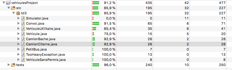 Question 2 : Implémenter tout ce qui concerne les véhicules avec les tests associés (20mn)
